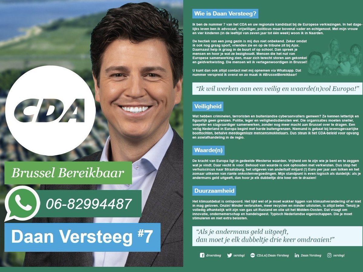 Onze Kandidaat voor het Europees Parlement uit Noord-Holland @verstegi heeft een goed programma en hij brengt de EU dichtbij! U kunt hem altijd bereiken! Stem @cdaeuropa op 23 mei!
