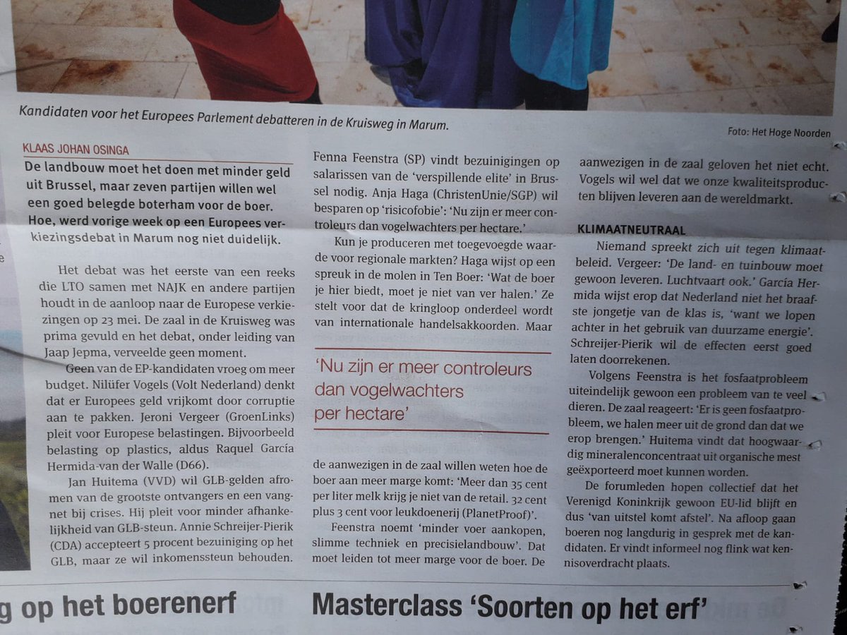 In @nieuweoogstnu van zaterdag mooi verslag van LTO-debat in Marum. @fennaf @AnnieSchreijer @jhuitema @NiluferVogels @RaquelGarciaHer @jeronivergeer