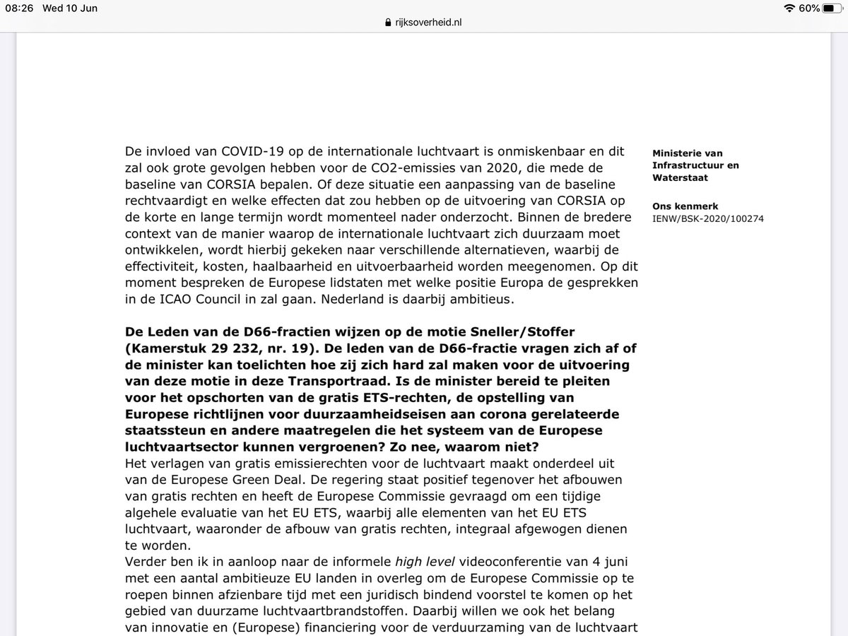 Een geweldige kans gemist om juist in deze crisis een goed klimaatdoel voor de luchtvaart te stellen.