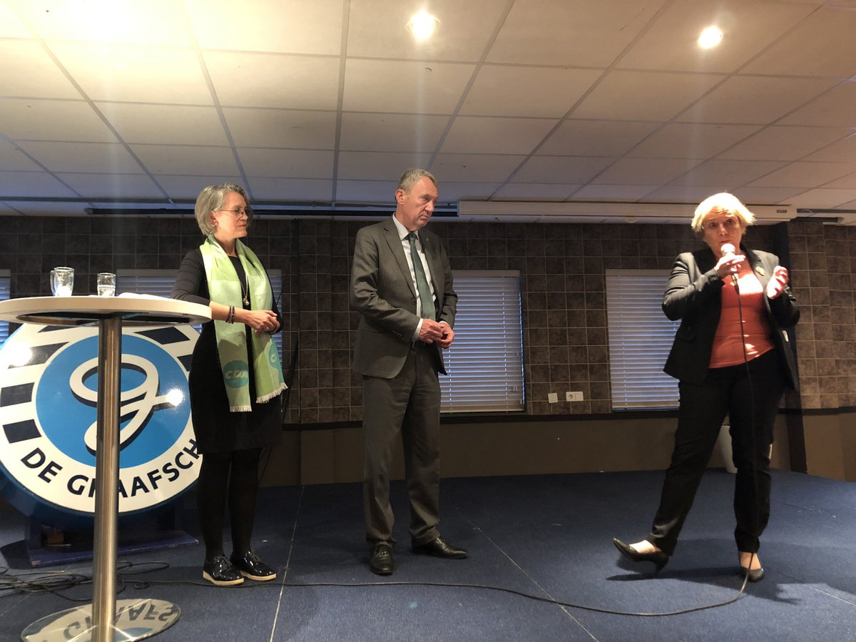 +1Vanavond zijn @MinBijleveld en de Achterhoekse kandidaat voor het Europees parlement @henkjanormel te gast op onze mooie Vijverberg en spreken met een goed gevulde zaal over Europa en internationale veilgheid. Welkom bij @DeGraafschap, welkom in de Achterhoek!