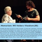 Vandaag hebben we vernomen van het overlijden van Wil Velders-Vlasblom. Ze was een drijvende kracht en heeft veel betekent voor onze organisatie. Wij wensen haar familie en nabestaanden veel sterkte toe.