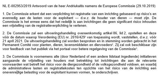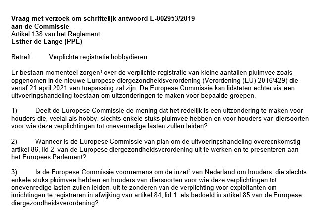 +1Klare taal van @EU_Commission op mijn vragen over hobbykippen: ook de Commissie vindt dat het “redelijk is aan inrichtingen die geen significant risico inhouden een vrijstelling van de registratieverplichting te verlenen”. #Factcheck ➡ estherdelange.nl/antwoorden-vra…