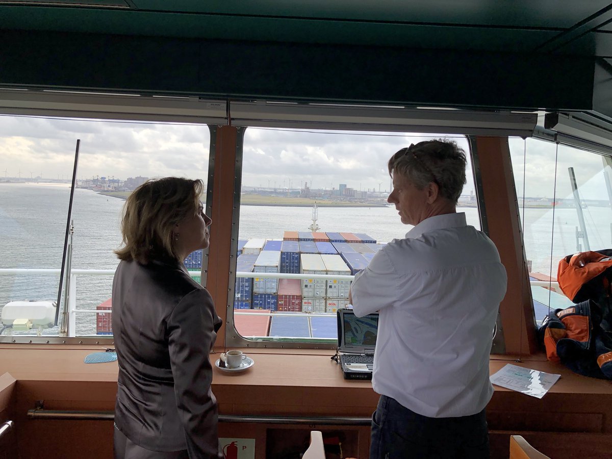 +3Minister @CvNieuwenhuizen vandaag op bezoek bij @Loodswezen. Na lange klim op loodsladder een containerschip van 366 meter naar Tweede Maasvlakte geloodst. Scherpe bochten, harde wind, al met al een stevige klus. Dank voor uw komst en interesse in 247pilot.nl !