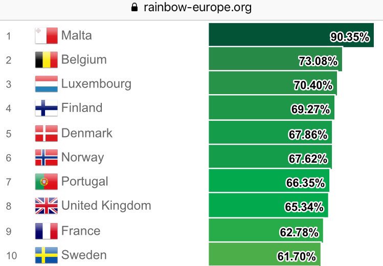 +1As the #IDAHOTforum opens in Oslo, #Malta is confirmed by @ILGAEurope’s #RainbowMap as the leading European country on #LGBTI policy for the 4th year running.
