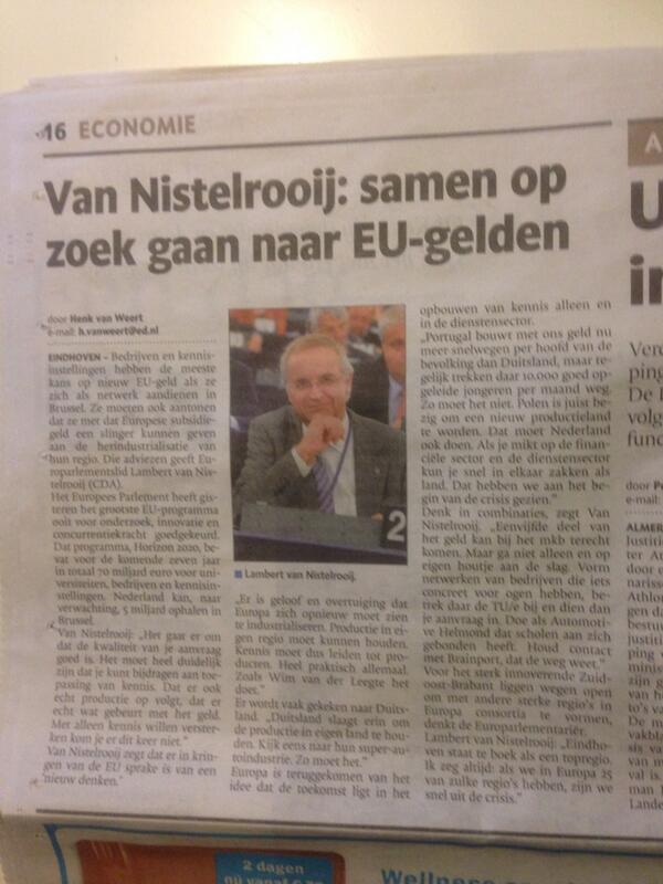 Vandaag volgt stemming Horizon 2020, (R&D programma), daarop ben ik EVP "schaduw" rapporteur: NL krijgt incl EU-regiogelden 5 miljard! #CDA