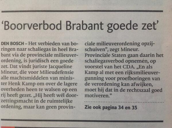Brabants Dagblad vanmorgen op de cover: boorverbod in milieuvergunning, op voorstel CDA, goede zet.