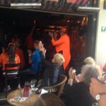Heel Nederland in Brussel maakt zich op om de wedstrijd te gaan kijken. Publieke TV schermen mogen hier blijkbaar niet, dus allemaal binnen!