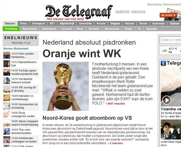 Analyse: Wat zou er gebeuren als Nederland het WK wint? flabber.nl/linkdump/plaat… #humor @Flabber #NED #WK #WK2014 #WK14
